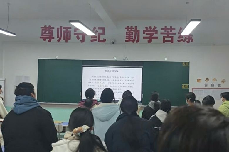 升旗仪式上进行的“学宪法 用宪法”主题国旗下演讲,以庄重的仪式感点燃了学生学习宪法的热情。每日 7:40-8:00,组织全体学生开展宪法晨读活动,通过齐声诵读宪法条文,让法治理念在朗朗书声中入脑入心。各班级利用晚自习时间,召开“国家宪法日”主题班会,通过案例分析、互动讨论等形式,帮助学生理解宪法与日常学习生活的紧密联系。