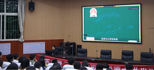 雪杰以《我的青春不“冒烟”》为主题,结合青少年身心特点,围绕“严峻的吸烟现状、青少年吸烟的主要原因、烟草的全面危害属性、吸烟的危害、青少年拒烟与戒烟方法”等五大核心内容展开讲解。整场讲座将健康知识与德育教育深度融合,有效强化了学生的健康意识与文明素养。讲座结束后,全体学生撰写心得体会,进一步巩固了教育成效。