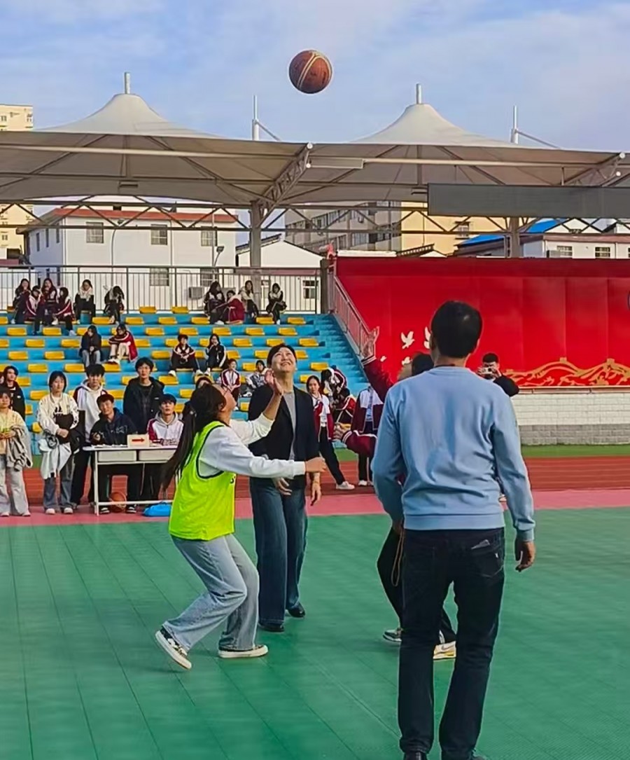 随着裁判一声哨响,双方球员迅速进入状态,你争我夺、攻防有序,场上奔跑的身影、精准的投篮、默契的配合,点燃了全场气氛。场边观战的师生们热情高涨,掌声、呐喊声不绝于耳,共同沉浸在这场充满活力与激情的篮球盛宴中。