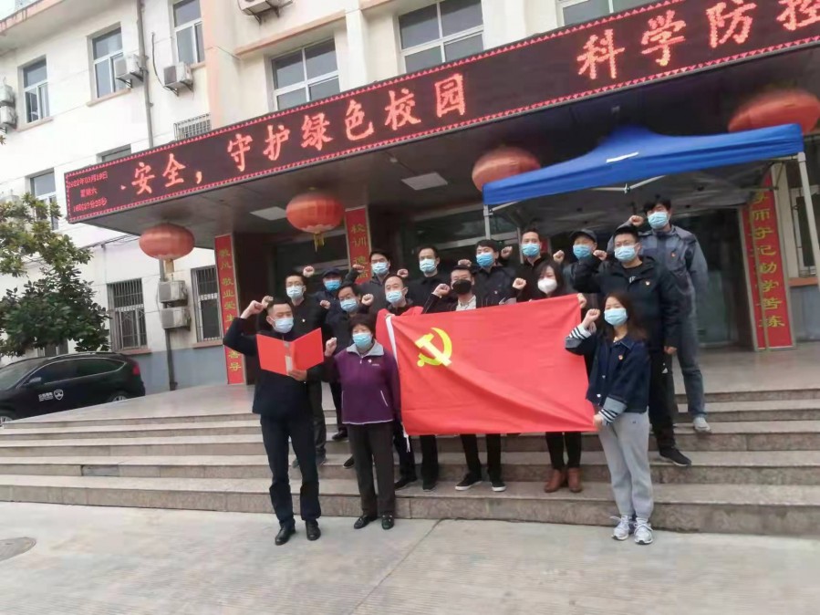 为加强学校疫情防控工作,我校党委积极响应宝鸡市委组织部号召,成立学校疫情防控临时党支部。3月19日下午,学校举行了临时党支部成立大会并进行了宣誓仪式,相杨路社区书记李惠宁、副书记周亚利、临时党支部全体党员参加。