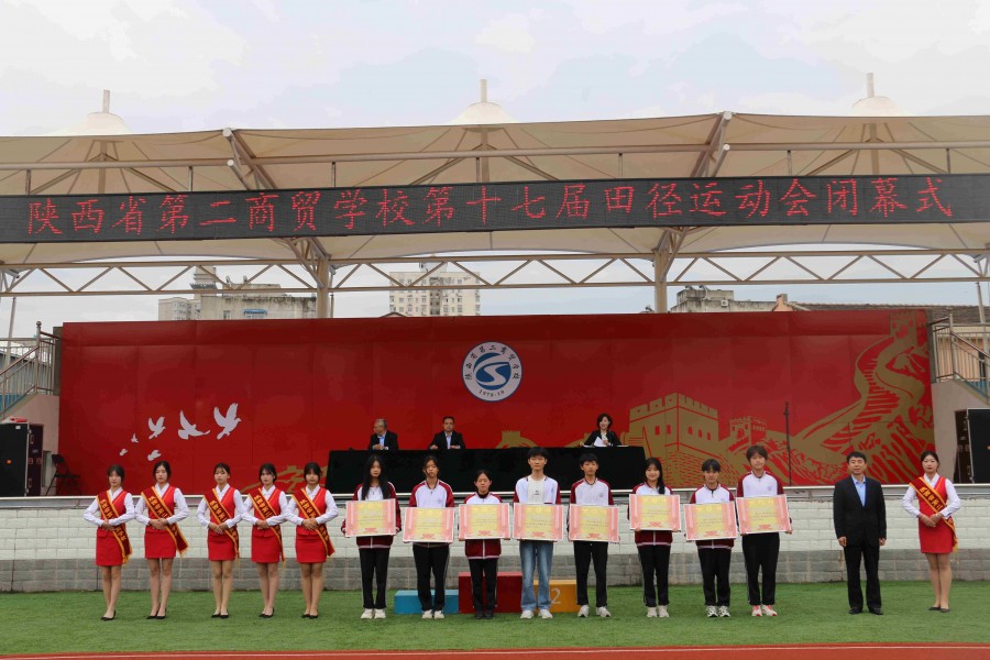 5月6日上午,为期两天的运动会落下帷幕,陕西省第二商贸学校举行了第十七届田径运动会闭幕式。在各位裁判员、各岗位工作人员的辛勤工作下,全体参赛师生经过了激烈的角逐,我校顺利完成了本次运动会的所有赛程和任务。校领导为本次运动会表现优异的班级和个人颁发了奖项,并合影留念。