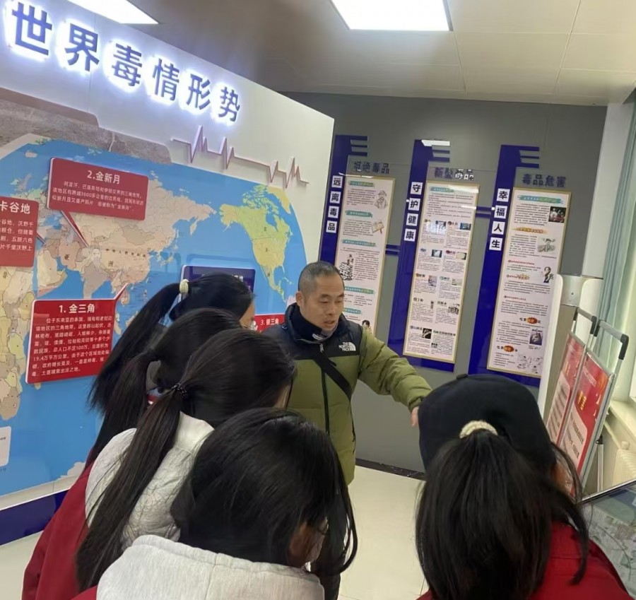 1月3日,陕西省第二商贸学校部分学生在保卫干事何业坛和学生干事郑智鸣的带领下,前往渭滨区禁毒站进行参观学习。