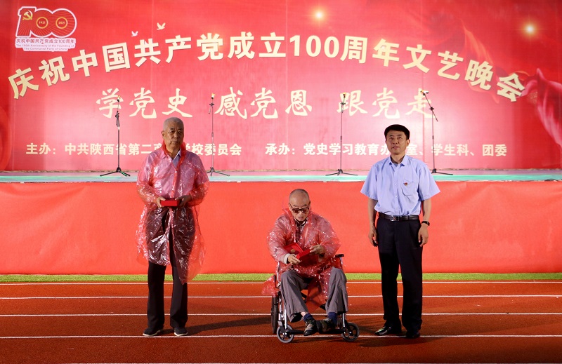 晚会伊始,党委书记张维明为学校“光荣在党50年”的4位老党员颁发了纪念章。校长陈斌致辞,他向获得“光荣在党50年”纪念章的老同志表示祝贺;他指出,我们党始终秉持为中国人民谋幸福、为中华民族谋复兴的建党初心,只有在中国共产党领导下才能实现伟大复兴的中国梦!他强调,全体师生要坚决贯彻落实上级的安排部署,深入开展党史学习教育,全体党员干部要积极践行“我为师生办实事”活动,着力提升教学水平、管理水平,育人质量及办学条件,真抓实干,开拓创新,努力实现学校高质量发展。