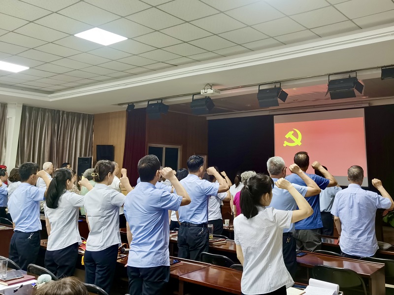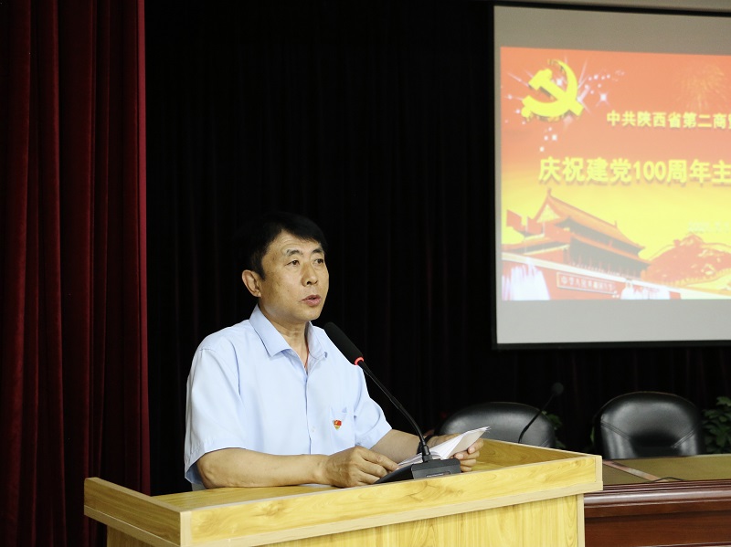 7月1日上午,陕西省第二商贸学校全体党员、教职工在学校多功能厅参加了庆祝建党100周年主题党日活动。大家集体收看了中共中央庆祝中国共产党成立100周年大会实况直播,认真聆听了习近平总书记发表的重要讲话,举行了新党员入党宣誓仪式,全体党员同志随同重温了入党誓词。
