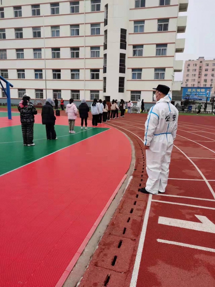 自3月15日以来,每天早上8:00-晚上7:00,我们的赵警官,铁人搬坚守在陕西省第二商贸学校防控工作的一线,不管阴晴冷暖,还是风吹雨打。为确保师生安全,他严把门禁制度,对外禁止外来人员进入,对内杜绝在校师生走出校门。发现不利于疫情防控的问题和现象绝不含糊,及时向学校领导反馈,努力把问题扼杀在初期。每天帮助社区志愿者对学校进行防疫管控,随时向学校师生和家属宣传疫情防护知识和新政策,引导大家做好自我防护,遵守防疫政策。在社区志愿者为学校师生及家属做核酸检测的紧要关头,赵警官不畏艰险,冲锋在前,协助学校努力维护检测秩序,校园里每天都能听到他熟悉的喊声:“请大家戴好口罩,不要拥堵,保持一米线距离。为了您和家人的安全,做完核酸请戴好口罩,及时回家,不要原地逗留或交谈。”每次核酸检测,赵警官都会帮助行动不必、坐在轮椅上的离退休老教师推到监测点,协助检测。遇到哭闹的小孩,赵警官严肃的面孔立马笑容满面,经常用儿歌笑话哄着小朋友天天想要做检测。一天下来,嗓子哑了,衣服也被汗水浸透了,浑身累得像散了架,甚至有时候忙起来连饭都顾不上吃一口。有时候,有人忍不住问他:“赵警官,您累不累?这样做咱图个啥?”可他总说微微一笑 “:人民公安,关键时候就得勇于担当,冲锋在前。这些老人和小孩,就是我们的家人,疫情当前,保护大家,就是守护我们的家园。”