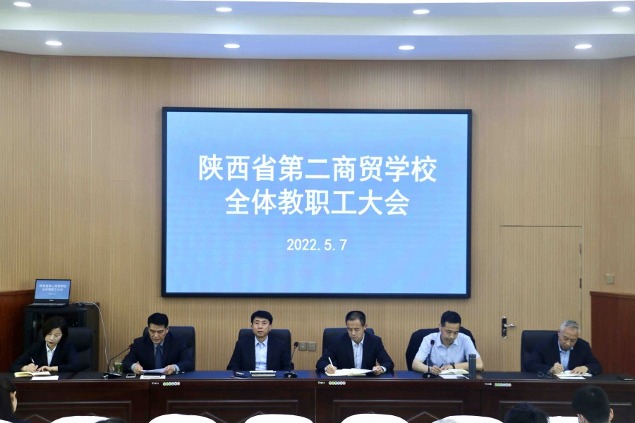 5月7日下午,省第二商贸学校召开全体教职工大会,总结表彰上年度亮点工作及先进典型,安排部署2022年重点工作,会议由副校长杜玉锁主持,学校全体职工参加了会议。